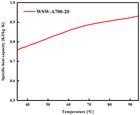 Specific heat capacity of WSW–A700–20 from room temperature to possible desorption temperature.