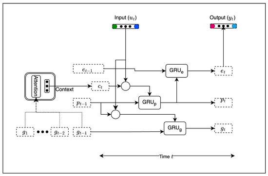 Each participant’s state evolves throughout the conversation, and these states contain valuable information that can be utilised to gauge the speaker’s emotions. The expression GRUp introduces a computational framework aimed at capturing the speaker’s evolving state during the conversation. This is achieved by continually updating the respective current states () of the speakers whenever an utterance () is made, as shown in Equation (3); , as shown in Equation (4), represents the context of the conversation evaluated with attention mechanism, which is described in Section 3.9.