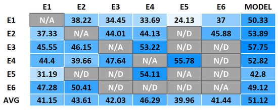 Evaluator and model labelling comparison (weighted average F1 score in percentage, N/A—not applicable, N/D—no data points).