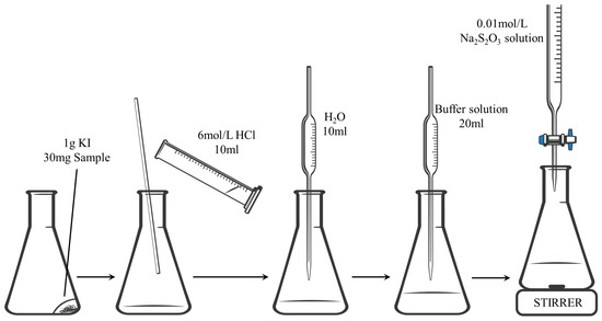 The iodometric titration method can be categorized into multiple titrations or a single titration [7]. In our experiment, we utilized a single titration method. Figure 2 depicts the experimental setup and procedure.