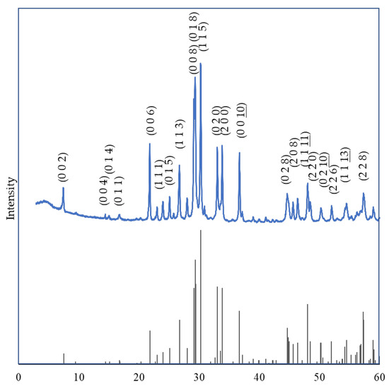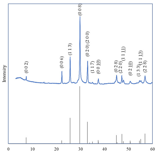 To verify the Bi2Sr2−xLaxCuOy phase at room temperature, X-ray diffraction (XRD) analysis was conducted using a RIGAKU Ultima IV diffractometer (Rigaku Corporation, Tokyo, Japan) with Cu Kα radiation. The instrument was set to a voltage of 40 kV and a current of 20 mA. Measurements were taken over a 2θ range of 3 to 60° with a scanning speed of 5°/min. Detailed X-ray diffraction conditions for the X-ray diffraction analysis are provided in Table 2.