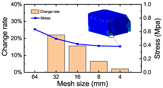 Along with the torsional stiffness analysis of the battery box, a mesh independence analysis was conducted to validate the accuracy of the selected mesh size, with the results shown in Figure 4. Five finite element models with varying mesh sizes, ranging from large to small, were created initially. The stress values in the same region were then extracted from the results of these five models and plotted in Figure 4. The mesh convergence testing involved varying only the mesh size as the sole variable to ensure result accuracy. From Figure 4, it can be observed that as the mesh size decreases, the rate of stress variation also decreases. When the mesh size is reduced to 4mm, the stress variation rate is already below 5%. Therefore, it can be considered that the influence of mesh size on the stress results has been minimised and falls within an acceptable range. Considering that further reducing the mesh size would increase computational time and decrease computational efficiency, a final decision was made to choose a mesh size of 4mm. This result verifies the accuracy of the mesh size.