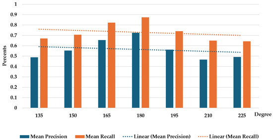 Figure 7 not only presents our study but also underscores its significance. The findings reveal that the real-time LPR system integrated with an SBC, like a Raspberry Pi, achieves its peak performance at a viewing angle of 180 degrees. This angle, where the license plate is directly in front of the camera, provides the most accurate view, thus enhancing the system’s license plate identification and detection capabilities. The significant drop in precision and recall at viewing angles of 135 and 210 degrees further emphasizes the viewing angle’s critical role in the LPR system’s accuracy and reliability.