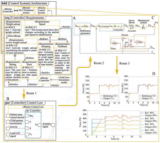 With the controller parameters, the development route 3—Figure 6D checks the fulfillment of the system requirements, including the ones of the control system and its controller.