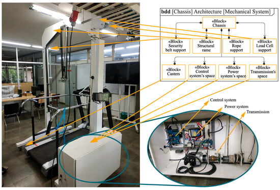 In the other hand, Figure 8 compares the chassis bdd diagram shown in Figure 3B with the implemented BWS system chassis. This figure shows that the built system satisfies the development requirements with each subsystem following the same design procedure and traceable to the proposed model.