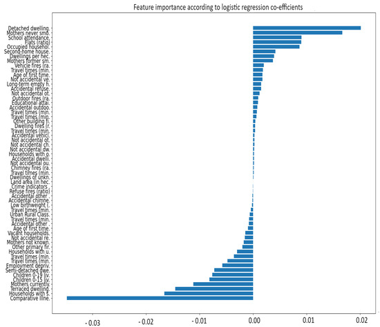 Global explainability is tackled through the implementation of a simple surrogate model using logistic regression, chosen for its interpretability and simplicity. This model is trained on the predictions of the superior performing GNN based on the results of the previous step, which is GraphSAGE. Specifically, the model is trained on the original features in combination with the predicted probabilities of the binary classification outcomes from the GraphSAGE model. The subsequent calculation of feature importance is based on the coefficients of the logistic regression. It is assumed that the magnitude of the coefficients inherently determines the relative importance of each feature for the GNN’s predictions. Therefore, these coefficients form the basis for interpreting the GraphSAGE’s prediction behavior on a global level.