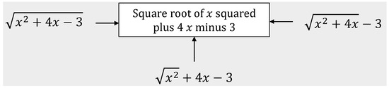 Notably, the mathematical operators employed as delimiters for the fragments may encompass one or more elements within them. These elements encompass fractions, roots, parentheses, and trigonometric functions. Figure 4 visually demonstrates this concept, showcasing text string separations at the fraction and root’s commencement and conclusion. This strategic separation facilitates accurate recognition of the arguments within these operators.