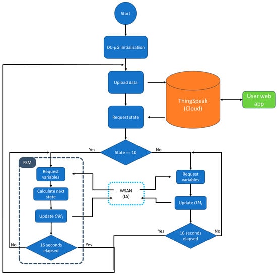 The CN is a key element in the IoT-EMS-WSAN because it serves as a link between the user and the DC-µG. For the most part, this is thanks to its role as an intermediary between the WSAN and the cloud server. For now, the general operation of the CN is illustrated with the flowchart shown in Figure 4, which is described next.