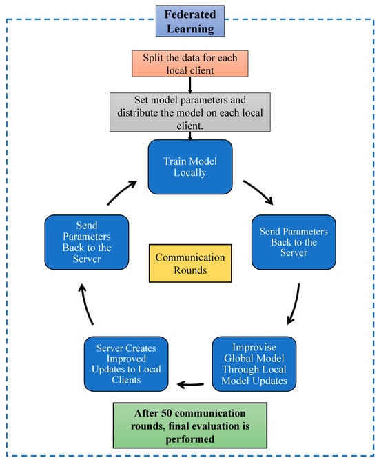 The subsequent sections of the article are structured as follows: Section 2 provides a concise overview of prior research that is similar to this study. Section 3 presents a detailed representation of the dataset used in this study and the methodology proposed for the federated learning model. The experimental conditions under which the proposed method is compared are presented in Section 4. Section 5 provides a comprehensive analysis and evaluation of the experiment’s performance, highlighting its findings. Section 6 concludes the proposed research and provides recommendations for further enhancement. Finally, the article concludes by providing a concise overview of the results.