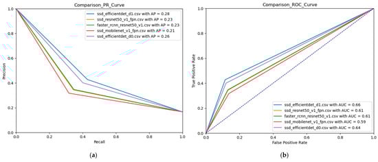 During the evaluation stage, all architectures were evaluated using the same configuration. Specifically, a batch size of 1 was used without enabling shuffling, and the number of epochs was set to 10. The evaluation metrics used were coco_detection_metrics, pascal_voc_detection_metrics, and oid_V2_detection_metrics.