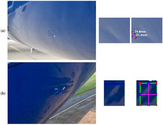 The results achieved using the developed models are not indicative of the success rate of a potential product-grade solution. However, during the testing phase, the performance metrics achieved are promising, prompting consideration of necessary improvements to enhance the quality of the results. As previously mentioned, the focus of the tests was to identify dents, which are the most challenging yet one of the most wanted in the industry. In testing results, the performance was compared with the baseline. In this case, the baseline can be regarded as a human’s ability to identify dents. In [27], See suggested in their research that the error level in manual aircraft visual inspection is 32%. From discussions with TUI’s experienced technicians, this is a very challenging task carried out by certified personnel and often involves using torches or changing the angle of view to identify discontinuities in the reflections. In addition, the decision to move closer to real-world applications rather than taking focused pictures without background makes the operational scenario more challenging but equally more convincing for the credibility of the solution. The straightforward, immediate actions that can be implemented to improve the results are the following:
