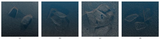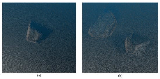 Sensor placement plays a critical role in achieving accurate rock centroid localization. Figure 4 demonstrates the effects of various sensor positions on the resulting point clouds. To capture the maximum amount of information from the target object, sensors must be strategically positioned, as shown in Figure 4b. In this study, the sensors were positioned approximately facing the objects of interest. Additionally, to optimize data collection, the objects were positioned near the center of the point cloud.