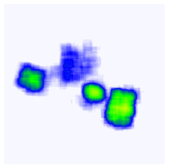 Given a point cloud P, points are initially distributed uniformly using a voxel grid of size g m. The ground space is discretized into grids with a resolution of g m. The point cloud density is quantified by the number of points within each grid cell. Considering a cubic window  centered at the coordinate origin, the BEV image  is represented as a matrix of size . The BEV image  is defined by Equation (7):
