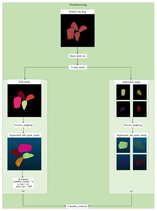- Method Generality. The system is based on 3D point cloud processing, making it adaptable to various 3D sensor technologies. The main algorithms (preprocessing, BEV conversion, and YOLO v8x-Seg) were designed to work with point cloud data regardless of the specific sensor;