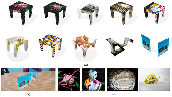 Similar to the sematic application of emoji icons, one of the best approaches is to allow constructive communication between former and current works. A multiple tentacle form design, which relinks graffiti elements, provided more engaging opportunities. For example, a typical design of two extruded linear members helped frame the moon. I also developed semi-transparent murals (Figure 10b) for easier alignment with the background through a richer mixture of depth. In general, puzzle-like 3D models enabled more gestures and depth when viewed from multiple orientations. In the theme of “Have a seat!”, people can place a small bench in front of the wall to enjoy the sight of graffiti or a scene, like seating in a museum or yetaixi (i.e., an open stage opera in Taiwan), to symbolize physical presence.