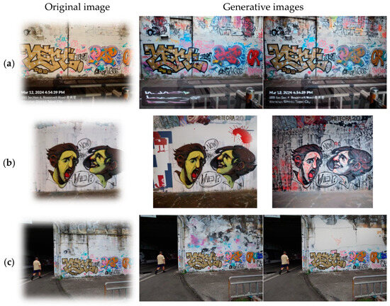 A more aggressive approach was to add self-created graffiti to the empty parts of the walls. An image is still needed to generate the graffiti, with the style adjusted in Stable Diffusion® (Figure 13). However, the desired style needs repetitive training to meet one’s requirements.