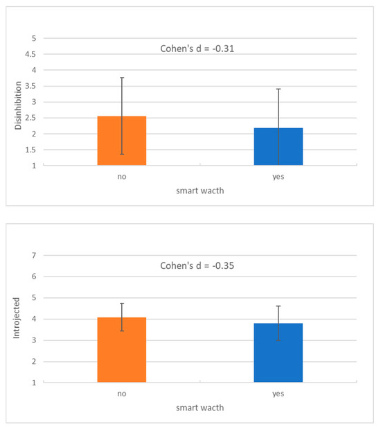 The findings indicate that adolescents who use SSW reported being regulated by less introjected motivation for exercising than the non-SSW users, though introjected motivation was reported to be low in both cohorts. Specifically, people holding an introjected motivation orientation were more likely to be seeking affirmation from their surroundings or fearing embarrassment by peers. Introjected regulation is a motivation state where the efforts are regulated by the wish to avoid negative consequences such as guilt, rejection, shame, and embarrassment along with perceived pressure to feel pride, self-confidence, and loved and evaluated by others [22]. Refraining from using SSWs was associated with relatively more external, but still low, regulated actions related to exercise. In contrast, adolescents who use SSW were less regulated by external factors and doing it more for their own benefit rather than by conscious effort to impress others and improve their social status. However, we must note that the low ratings given by the SSW user and non-user adolescents to the introjected and other motivation dimensions make these conclusions doubtful.