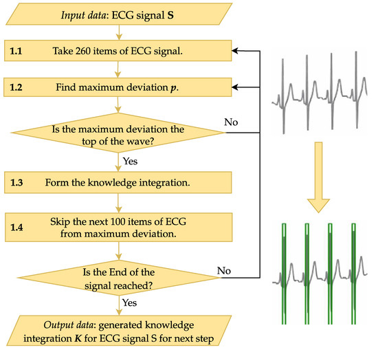 In our case, for the implementation of knowledge integration, a characteristic feature of the R peak is used, namely that the R peak has the maximum positive deviation within the cardio cycle.