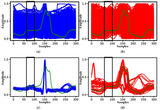 36. Moody, G.B.; Mark, R.G. The impact of the MIT-BIH arrhythmia database. IEEE Eng. Medicine Biol. Mag. 2001, 20, 45–50. [Google Scholar] [CrossRef]