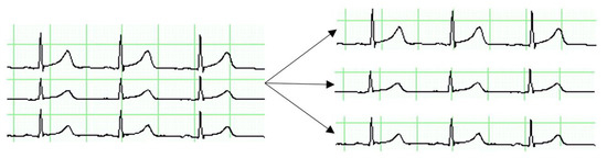 According to statistics from the World Health Organization, cardiovascular diseases are the leading cause of death worldwide [1,2]. Currently, there are many tools and means available to help clinicians prevent or detect heart problems. One of the most common methods is electrocardiography (ECG). ECG allows for the graphical recording of electrical phenomena from the human body that occurs in the heart muscle during its activity. The curve obtained from recording such activity is called an electrocardiogram or ECG. Thus, an ECG is a recording of fluctuations in the potential difference that occur in the heart during its excitation [3]. A standard ECG recording consists of 12 leads obtained from 10 electrodes [4].