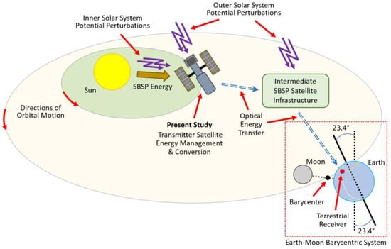 Recent technological advancements in energetic infrastructures and sustainability determined alternative possibilities for fulfilling the previously studied renewability and robustness criteria [] to address the mitigation of climate adverse events with continuously increasing severity. Among these state-of-the art studies, SBSP (Space-Based Solar Power) represents a developing domain having continuously increasing interest. Studies involving interplanetary distance energy transfer highlight preliminary confirmation of plausible applicability for concepts involving direct solar energy transfer using space mirrors [].
