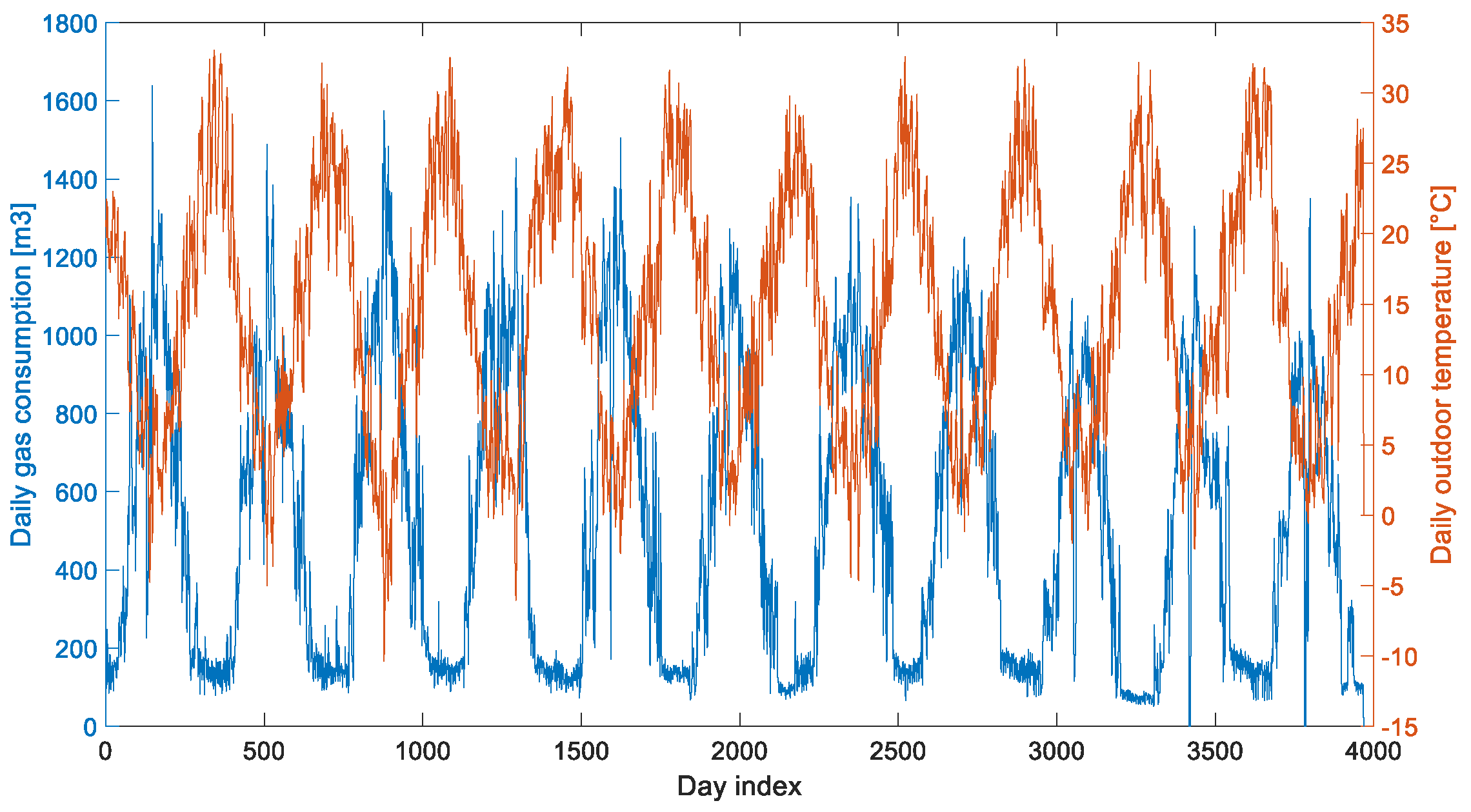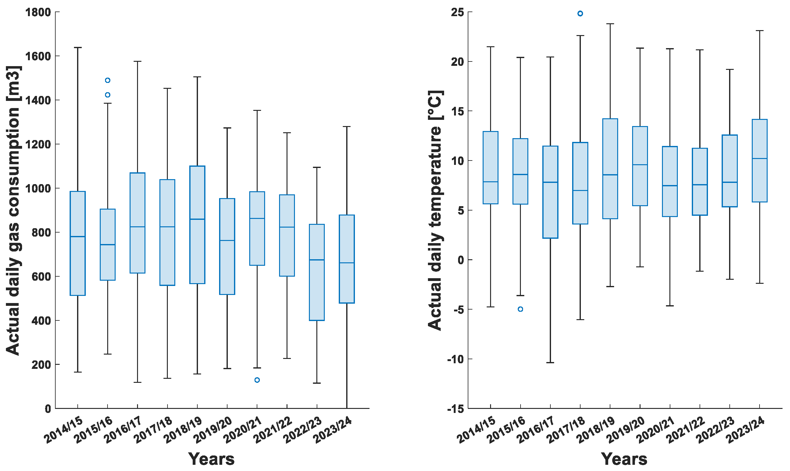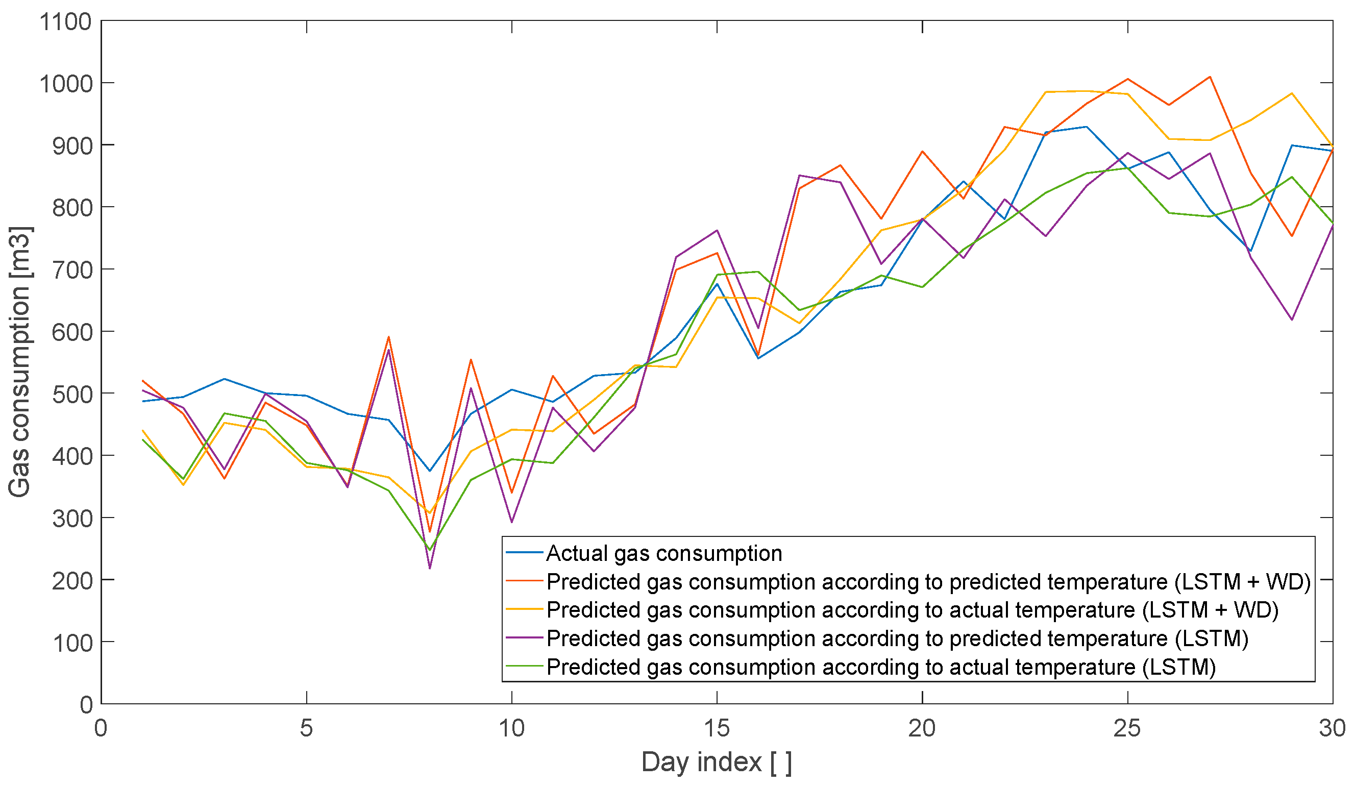 - Panek, W.; Wlodek, T. Natural Gas Consumption Forecasting Based on the Variability of External Meteorological Factors Using Machine Learning Algorithms. Energies 2022, 15, 348. [Google Scholar] [CrossRef]
