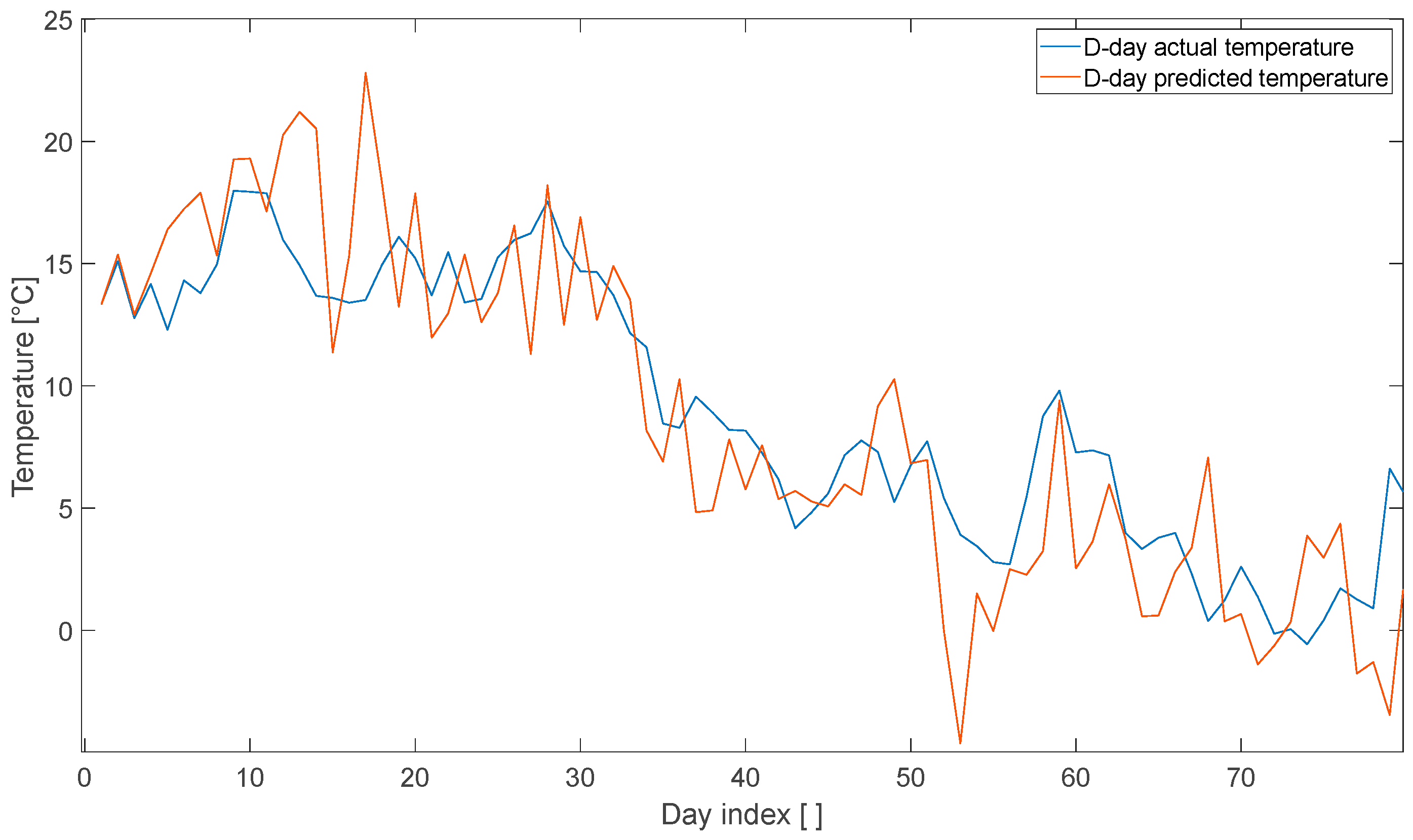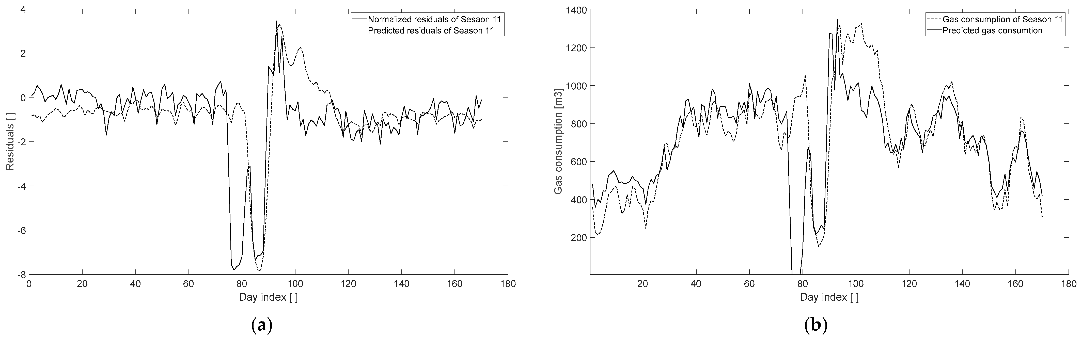 3.4. Prediction of Daily Gas Consumption Based on the Predicted Temperature