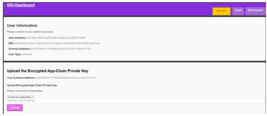 - Decentralized Identity (DID) Chain: Adapted from the architecture presented by Hsieh et al. [20], the DID-chain provides a self-sovereign identity management system. It operates independently of any central authority, granting users complete control over their personal identity data and mitigating the risks of centralized data breaches.