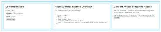 RBAC (Role-Based Access Control): A security model that restricts user access to system resources by assigning roles. This system strictly implements RBAC; for example, the update_instance() function can only be executed by the “doctor” role, while consent_access() is restricted to the “patient” role.