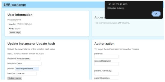updateInstance()/updateHash(): Allows a user with the Doctor role to upload a new instance or update the hash value of an existing record.