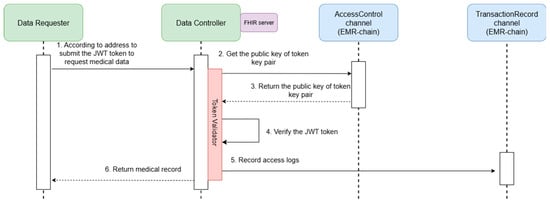 Finally, the public key of the token is recorded on the ledger for future validation by the token recipient. The function returns the generated JWT and the data access address to the Data Requester, enabling secure retrieval of the patient’s medical records.