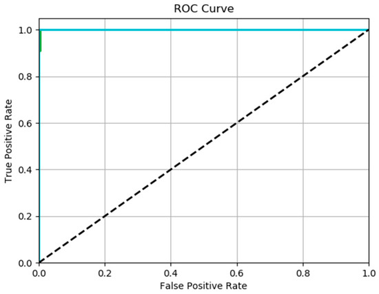 Figure 8 displays the Receiver Operating Characteristic (ROC) curve of the proposed face recognition model, illustrating the trade-off between the True Positive Rate (TPR) and the False Positive Rate (FPR) at different classification thresholds. The curve demonstrates the model’s discriminative ability, showing a steep slope toward the top-left corner. This suggests that the model has a high actual positive rate and a low false positive rate, making it highly suitable for reliable identity verification and recognition in real-world scenarios. The Area Under the Curve (AUC) value of approximately 1.0 confirms the model’s excellent quality. An AUC near 1.0 indicates the model can effectively distinguish between positive and negative samples, even under challenging conditions like occlusions, lighting variations, or non-frontal face poses. Compared to baseline models, the ROC curve in Figure 6 shows that the proposed hybrid architecture—integrating MTCNN for accurate face alignment, Enhanced FaceNet for discriminative feature embeddings, and Adaptive Feature Fusion for contextual insight—remains at the top of classification performance. This makes the model ideal for use in high-security environments where sensitivity and specificity are critical.