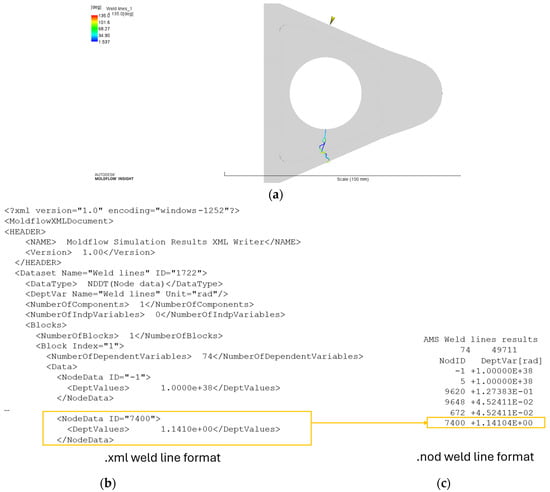 Export of element node values on the weld line in various formats: (a) gif, (b) xml, and (c) nod.