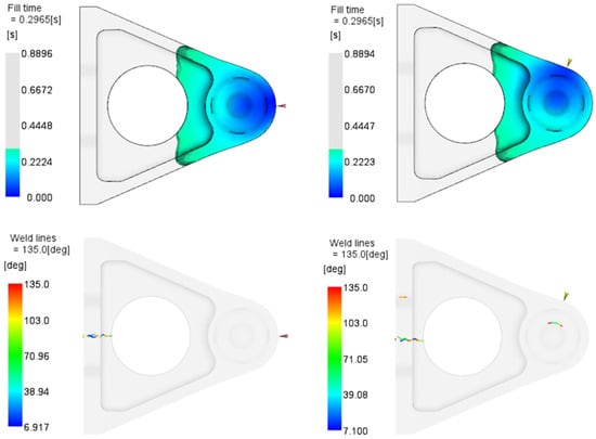 Evaluation of the molding front and the location of the weld line depending on the location of the runners along the perimeter of the lug.