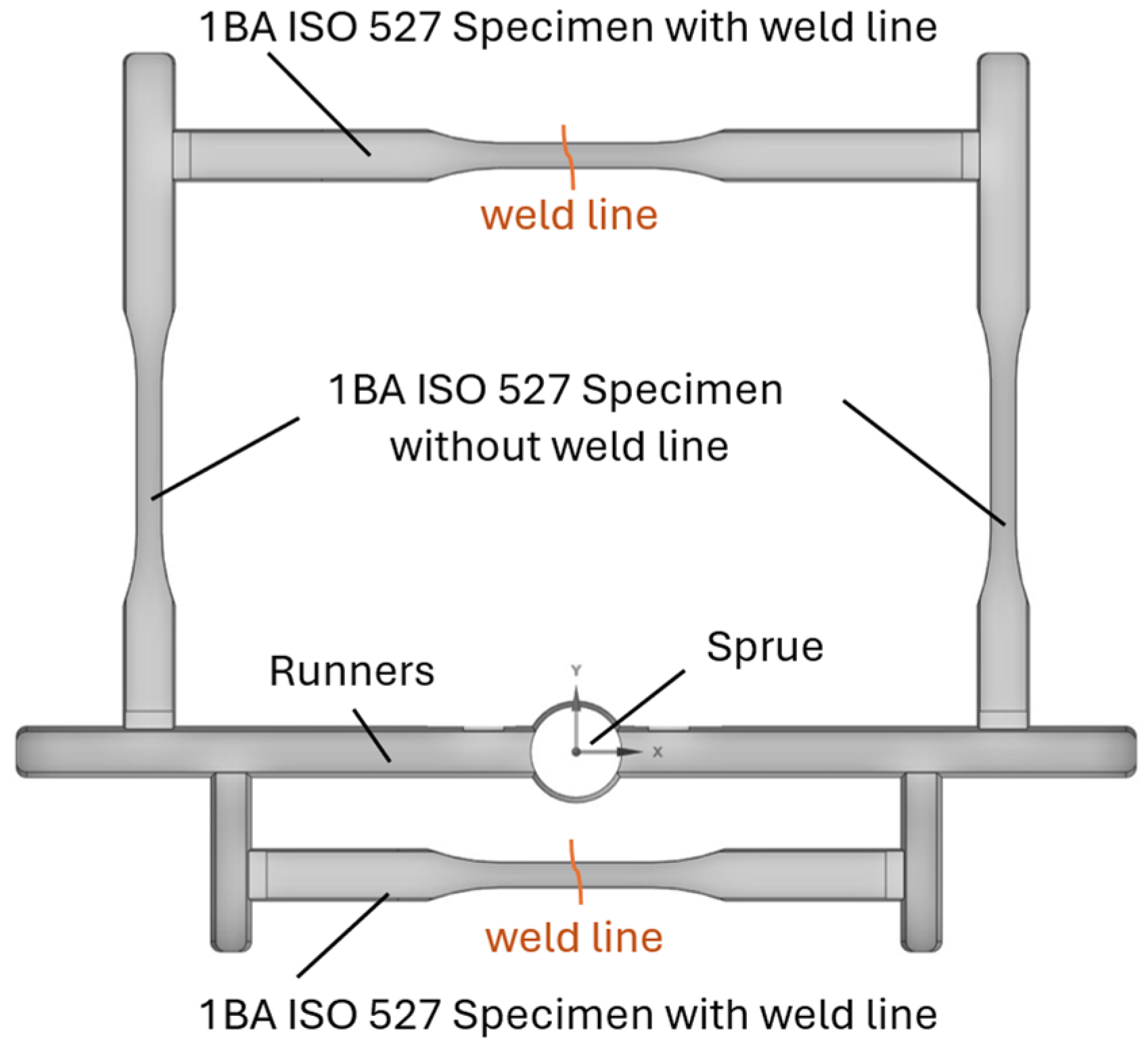 - Technological parameters of the injection molding process (injection rate, melt temperature, and mold temperature).