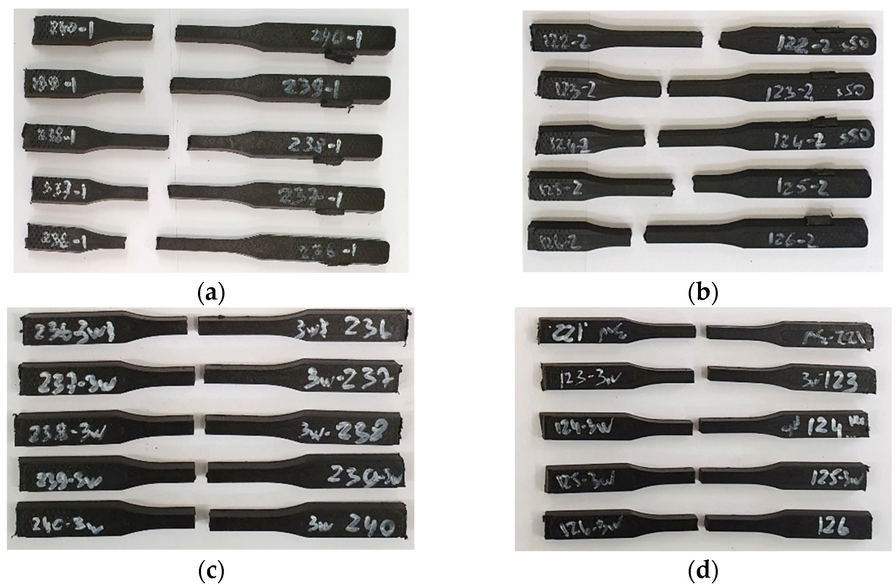 - ISO-527-2-2012; Plastics—Determination of Tensile Properties; Test Conditions for Moulding and Extrusion Plastics. ISO: Geneva, Switzerland, 2012. Available online: https://www.iso.org/standard/56046.html (accessed on 1 July 2025).
