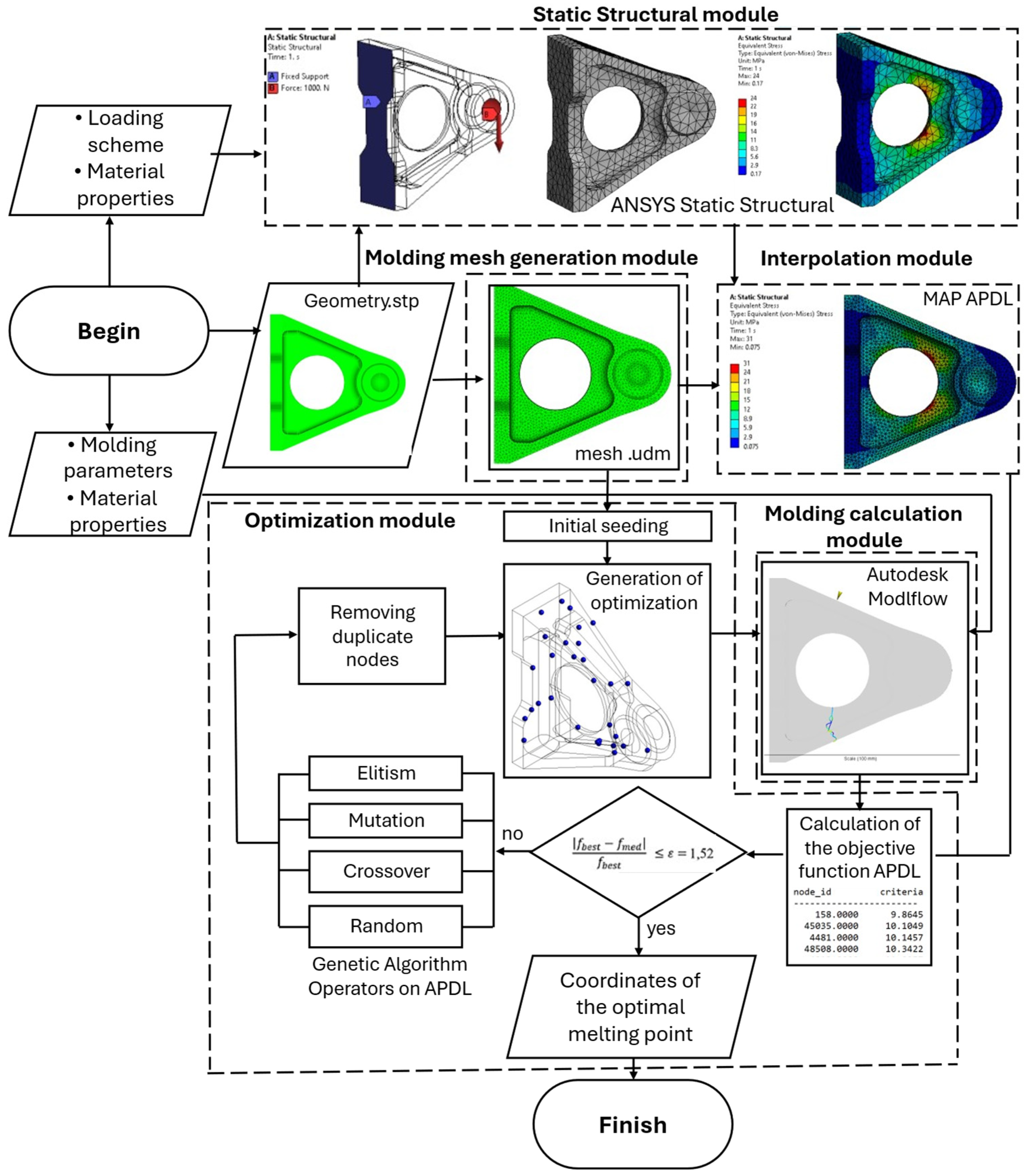 - GateOptWeld3D Code for Optimizing the Location of Melt Entry Points During Molding of Spatial Structures. Available online: https://github.com/Vladislava-Chertykovtseva/GateOptWeld3D (accessed on 25 September 2025).