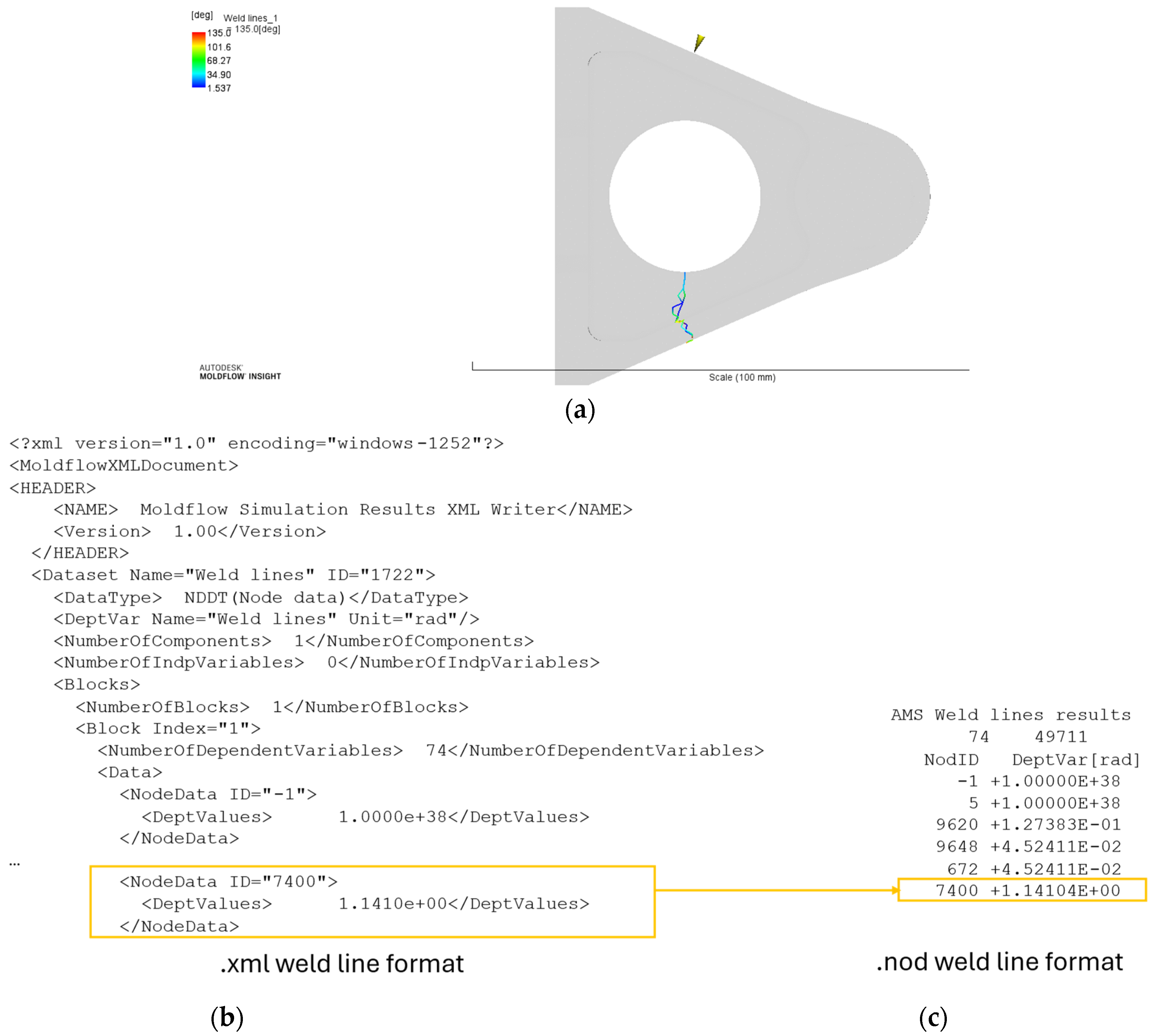 - Zhou, H.; Dequn, L. Modelling and prediction of weld line location and properties based on injection moulding simulation. Int. J. Mater. Prod. Technol. 2004, 21, 526–538. [Google Scholar] [CrossRef]