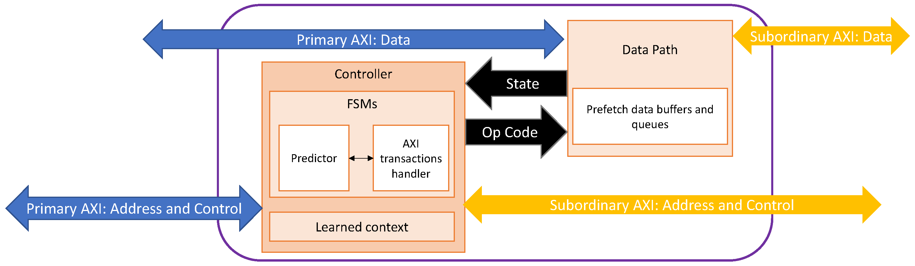 - Watchdog timer: Upon detection of a lack of activity either on the primary AXI bus or the subordinary AXI bus (due to a potential system failure or deadlocks), a designated watchdog mechanism will flush the learned context of the prefetcher and allow restarting to learn a new context.
