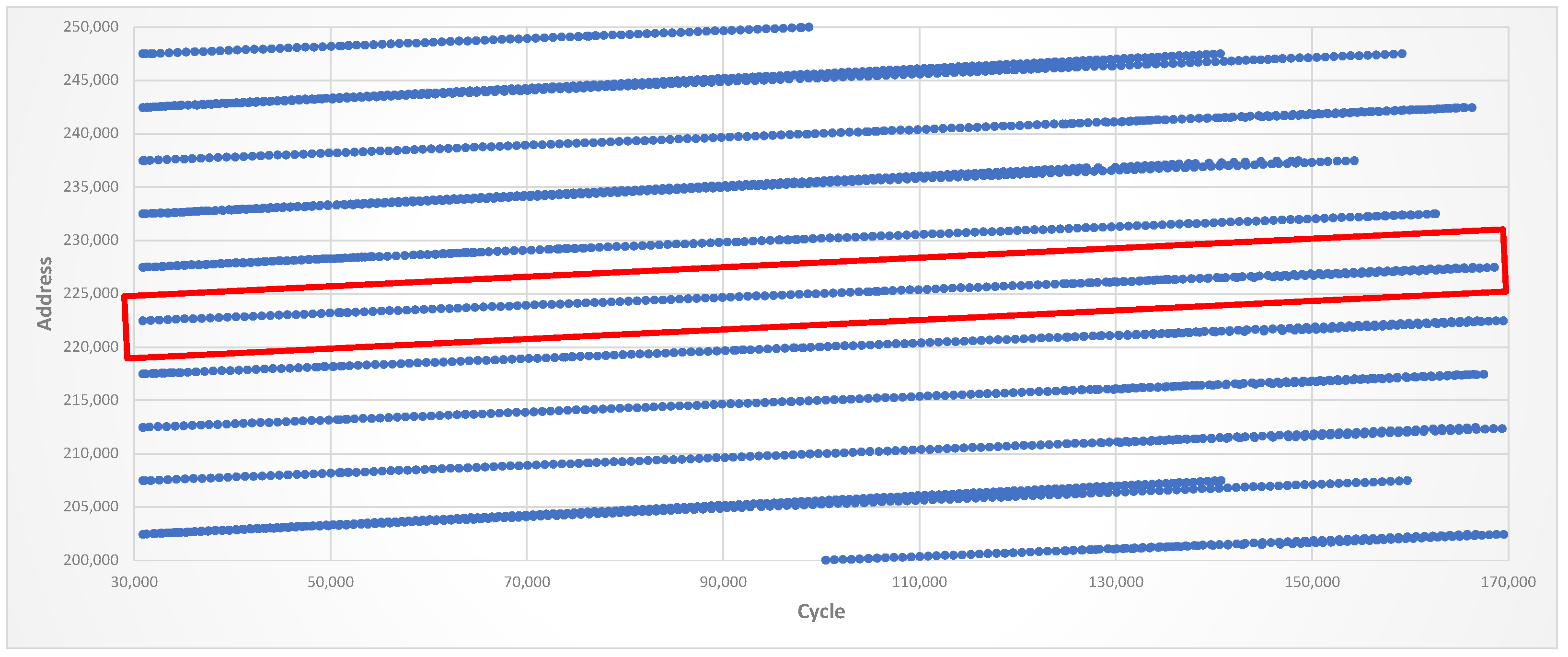 - Since the access address falls into configured window and matches the learned burst length and AXI ID, the prefetch engine calculate and store the stride in the prefetch context which consists of the following learned context: stride: 0x4, burst length: 3, AXI ID: 10.