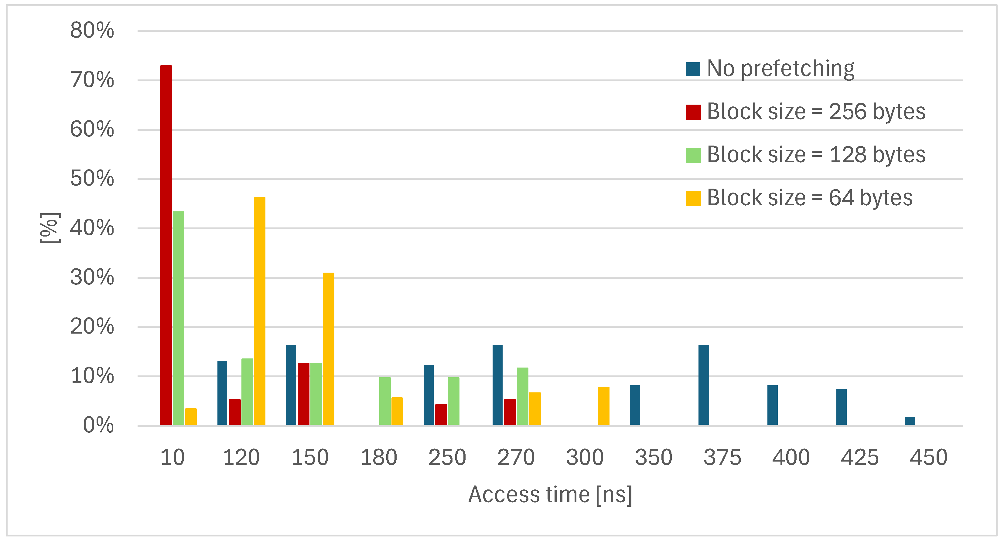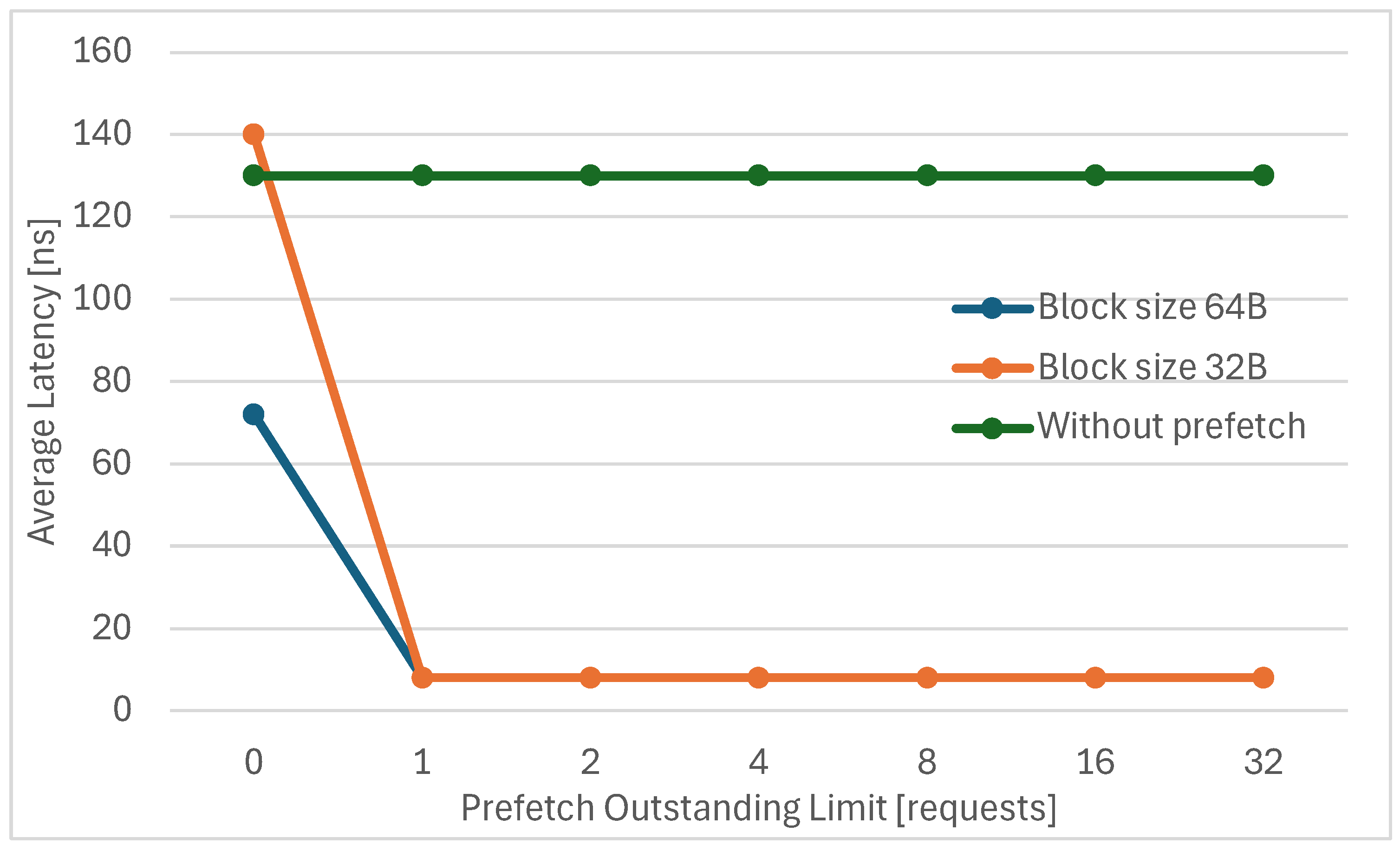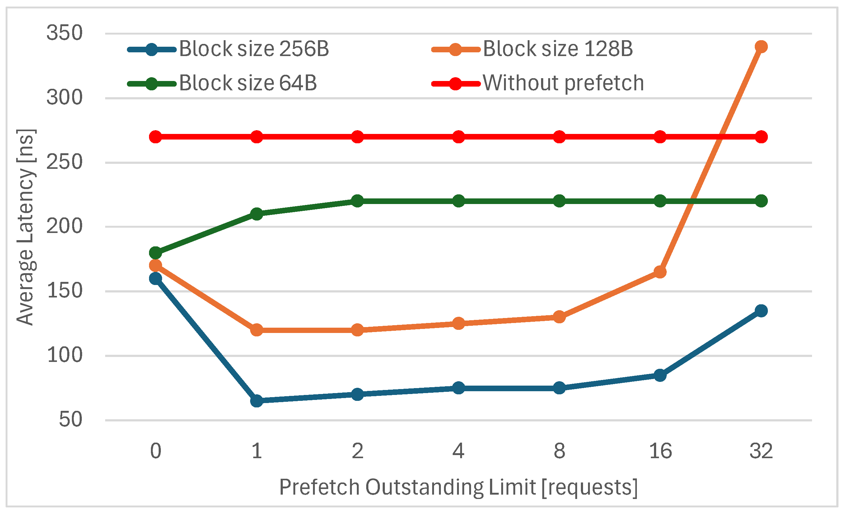 Benchmark | Prefetch Outstanding Limit [Requests] | Block Size [Bytes] | Latency [ns] |