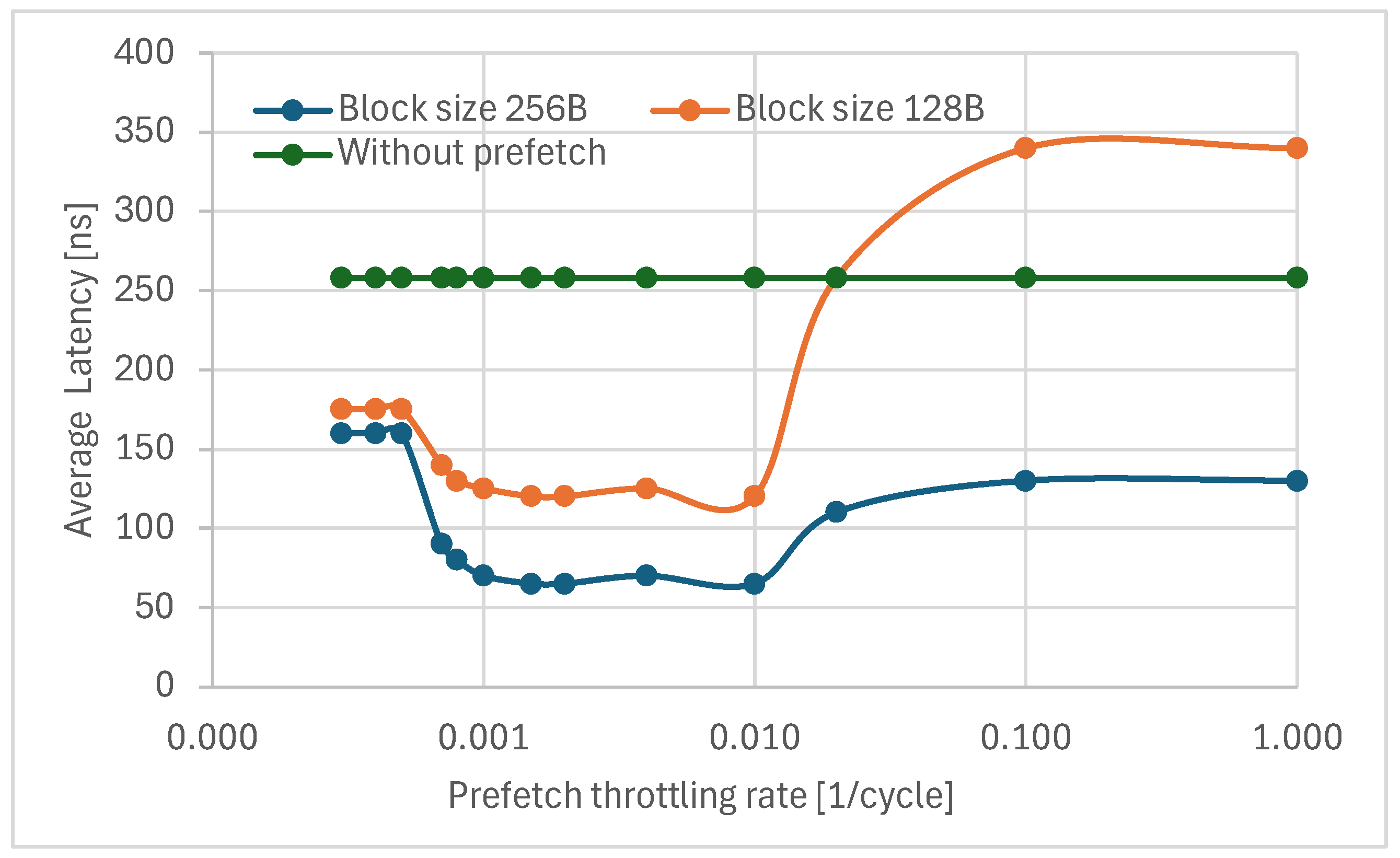 Benchmark | Prefetch Throttling Rate [1/Cycles] | Block Size [Bytes] | Latency [ns] |