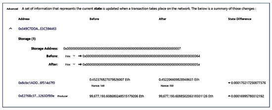 As seen in Figure 14, the system authenticates and records modifications to smart contracts following each execution. This includes functions such as energy trading and dynamic pricing modifications. These alterations are documented on-chain, rendering them immutable. The solution guarantees accountability and adherence to the logic established in smart contracts by preserving a permanent and tamper-proof transaction history. This not only bolsters confidence among participants but also safeguards against unauthorized modifications and fraudulent actions.
