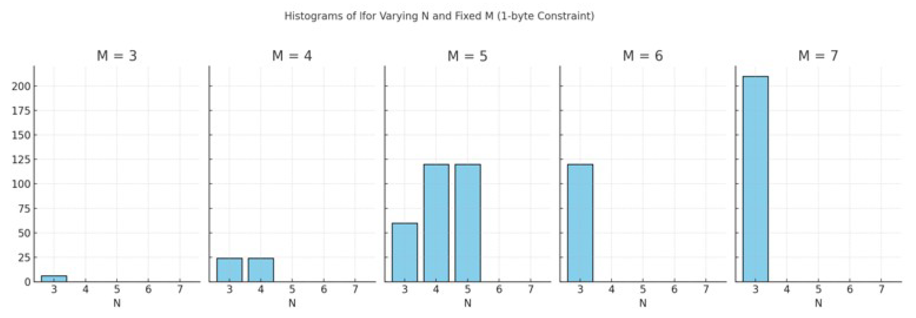 At this point in the DCC’s design, the parameters M and N need to be carefully optimized so that the total number of possible arrangements, represented by A(M, N), remains within the 1-byte storage limit (allowing 256 indexable entries) while still achieving maximum cryptographic diversity. The next subsection presents a thorough combinatorial analysis of this optimization, highlighting the tradeoff between security and performance.