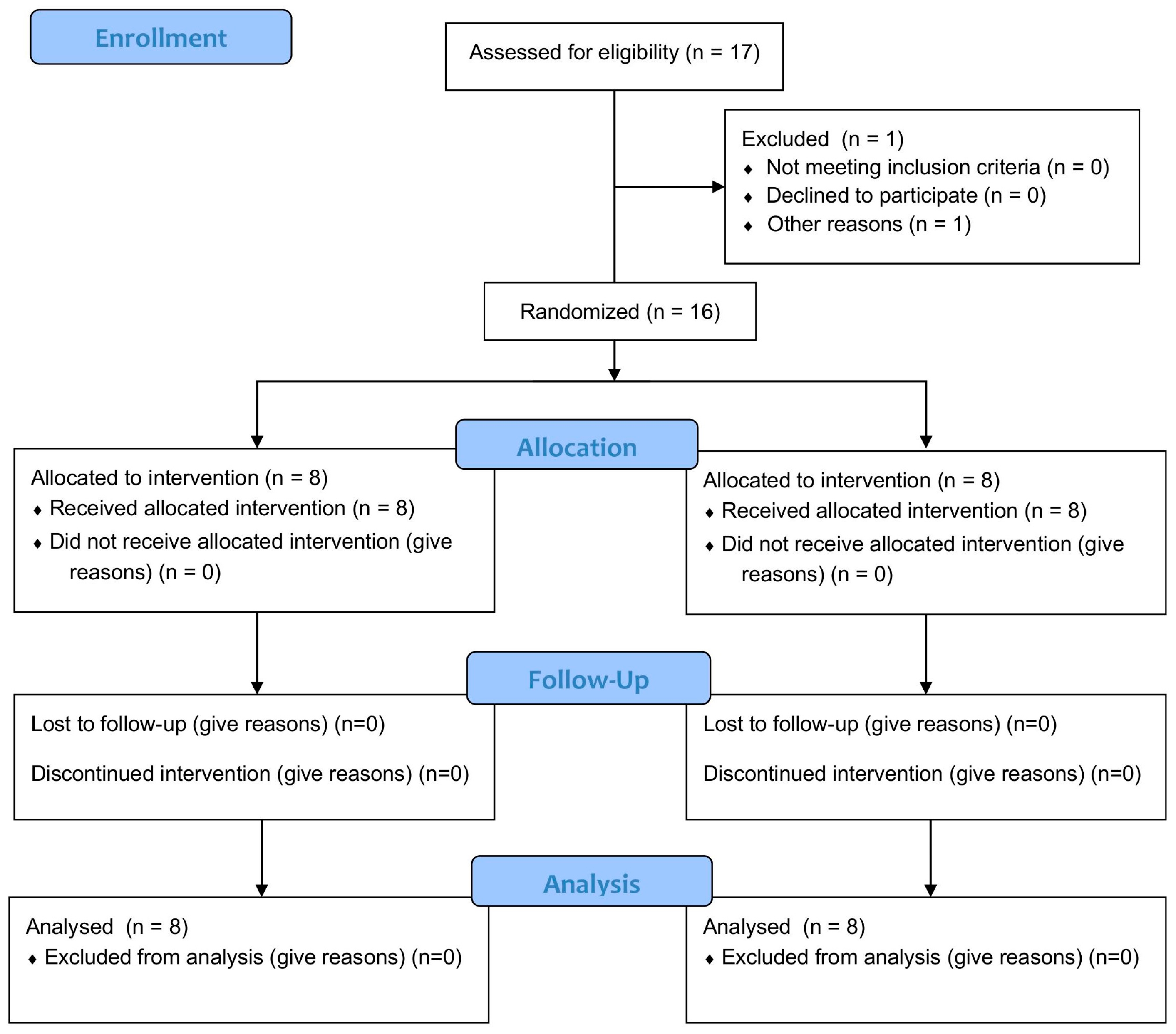 CG (n = 8) | EG (n = 8) | Total (N = 16) | |