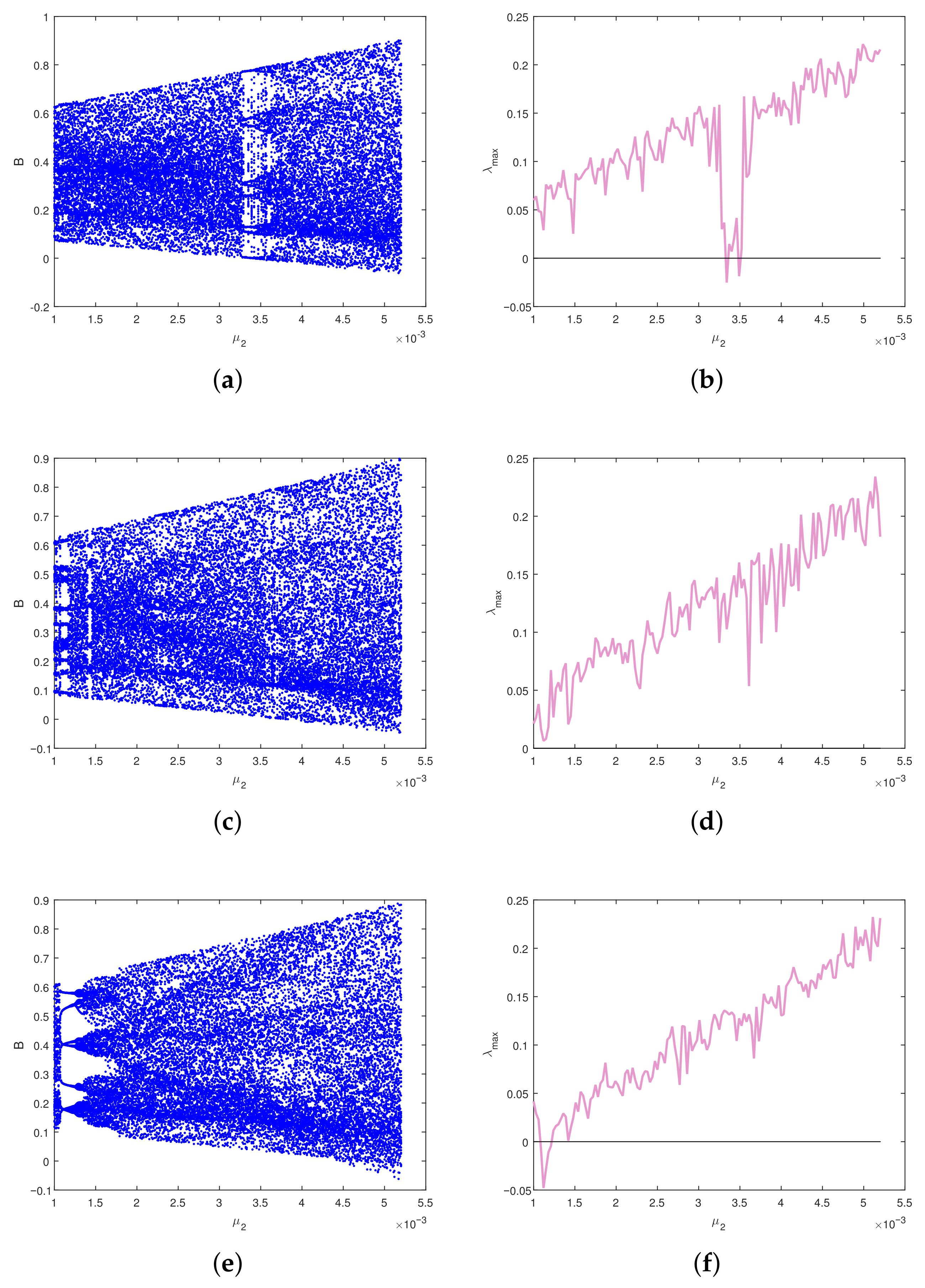 4.1.1. Dynamics of the FDCV Model with Variation in the Parameter