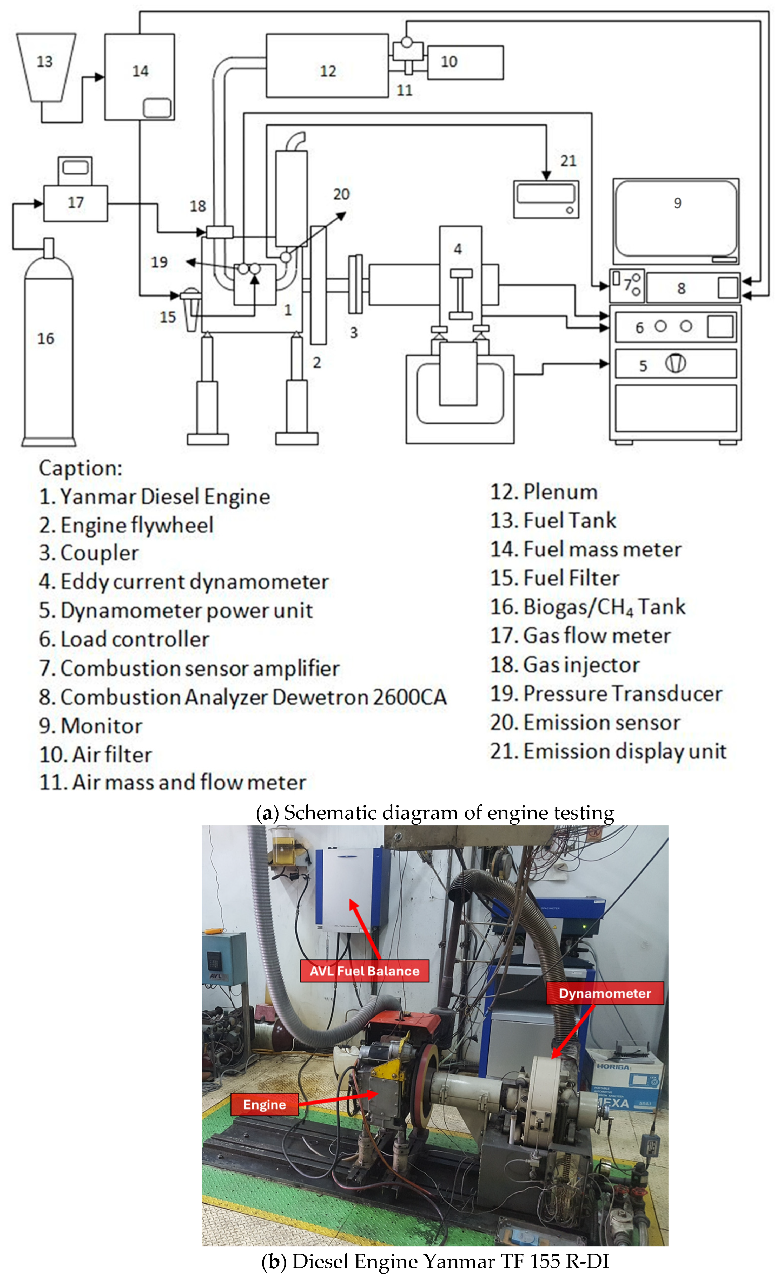 13]. Because gaseous fuels such as biogas have lower heating value than diesel, engines typically experience power derating and reduced brake thermal efficiency (BTE), with higher brake-specific fuel consumption (BSFC), especially at low loads [