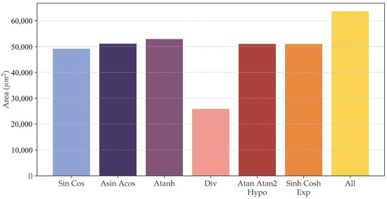 Our implementation leverages the unified CORDIC algorithm [11] to maximize hardware reuse across trigonometric, hyperbolic, and linear operations. Figure 5 quantifies the area efficiency gained through this architectural approach: