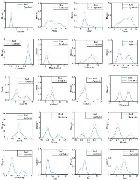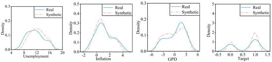 The real-world data sources utilized in this study include data from multiple institutions, such as the annual data from the General Directorate of Higher Education and data from the Contemporary Portugal Database []. Due to the limited availability of data for international students, the CTGAN was meticulously trained to augment the dataset by generating synthetic data, thus enhancing the analysis.
