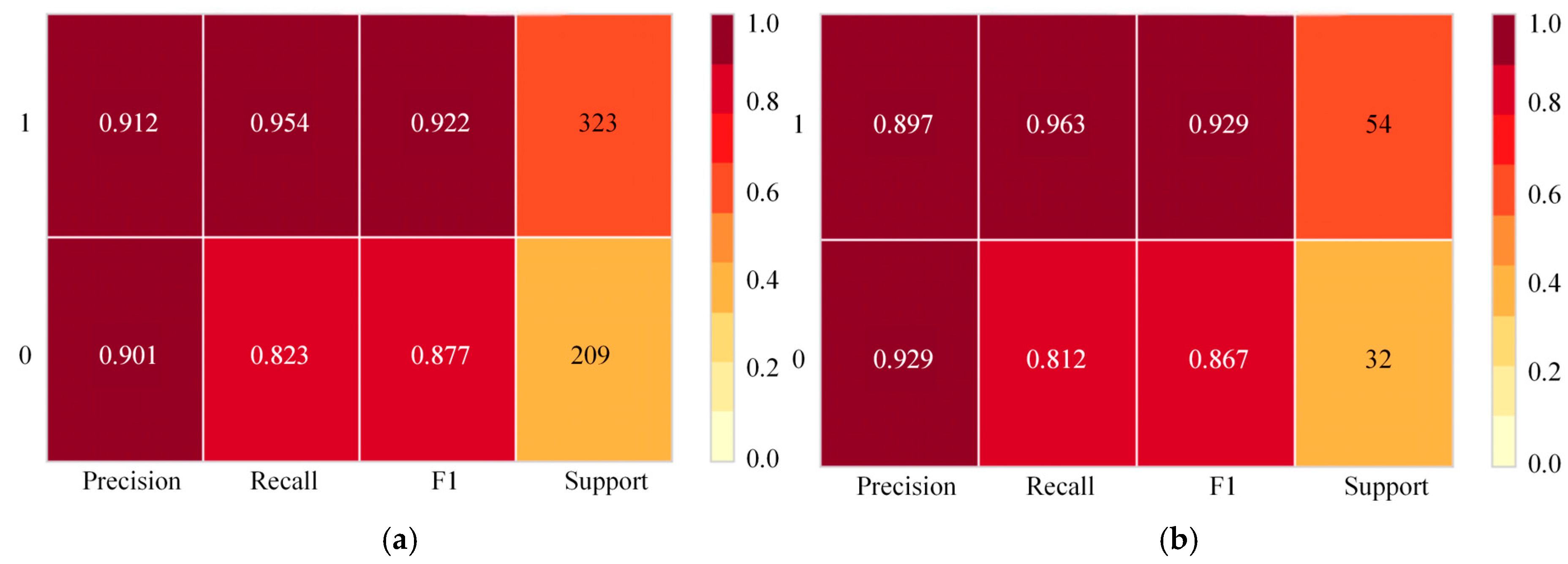 Figure 7 presents the classification report heatmap, which outlines the precision, recall, and F1 scores for each class. For domestic students, Class 1 (graduates) demonstrates high precision (0.912) and recall (0.954), yielding an F1 score of 0.922. For international students, Class 1 shows slightly lower precision (0.897), yet the model still demonstrates robust performance across all metrics, with high precision and recall values.